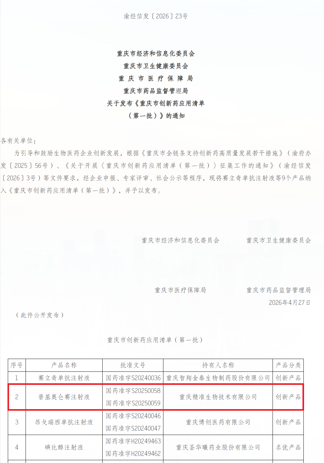 2026年4月,重庆精准生物技术有限公司及产业研究院双双通过市级复审,持续擦亮“专精特新”名片。